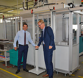 Lorsque Philipp Haindl, directeur général de Serafin, actionnaire de Heller, et Jörg Frommeyer, directeur général de Heller, ont appuyé ensemble sur le bouton de démarrage, ils ont officiellement confirmé notre nouvelle stratégie de centre de production, de forets, entièrement automatisé, l'un des plus modernes de ce type au monde. Heller, est très heureux de cet investissement, qui ouvre de nouvelles et multiples possibilités de production pour tous les types de forets béton.