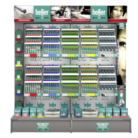 Les nouveaux concepts d’implantation pour les produits Heller garantissent une mise en avant parfaite de notre offre produits. La segmentation par couleurs ainsi que les bandes de communication explicites permettent un choix simplifié et rapide (vendeur muet) . Des tours de présentation complètent la mise en avant des produits dans le point de vente. En complément, Heller organise régulièrement des promotions adaptées aux besoins de chaque marché ou de chaque client.