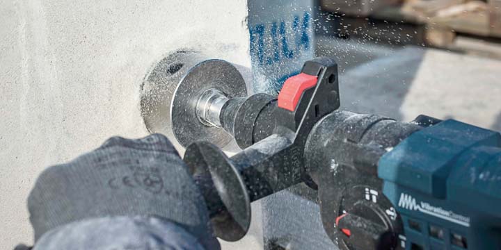 Pour réaliser des perçages dans le béton et les matériaux de maçonnerie, des forets dédiés au béton et à la pierre sont utilisés. Pour un montage conforme des composants, il est nécessaire d’utiliser des forets de fabrication certifiée. Les tolérances d’un foret peuvent être dépassées, si des forets d’une fabrication non contrôlée sont utilisés. Les forets avec une trop grande...